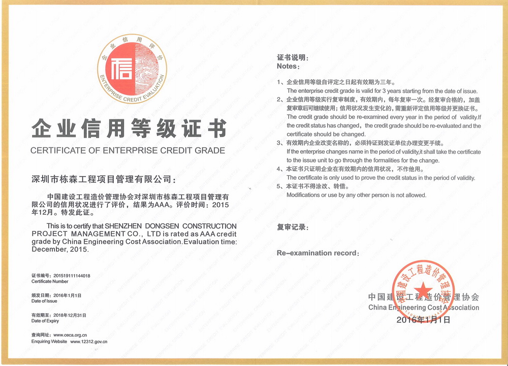 中國建設(shè)工程造價管理協(xié)會企業(yè)信用等級AAA