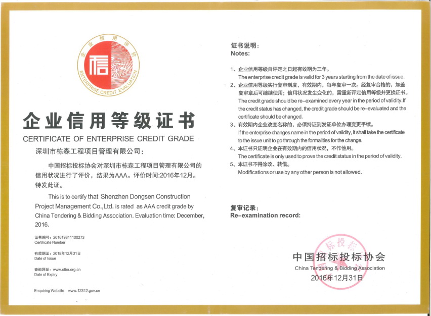 中國招標投標協(xié)會企業(yè)信用等級AAA